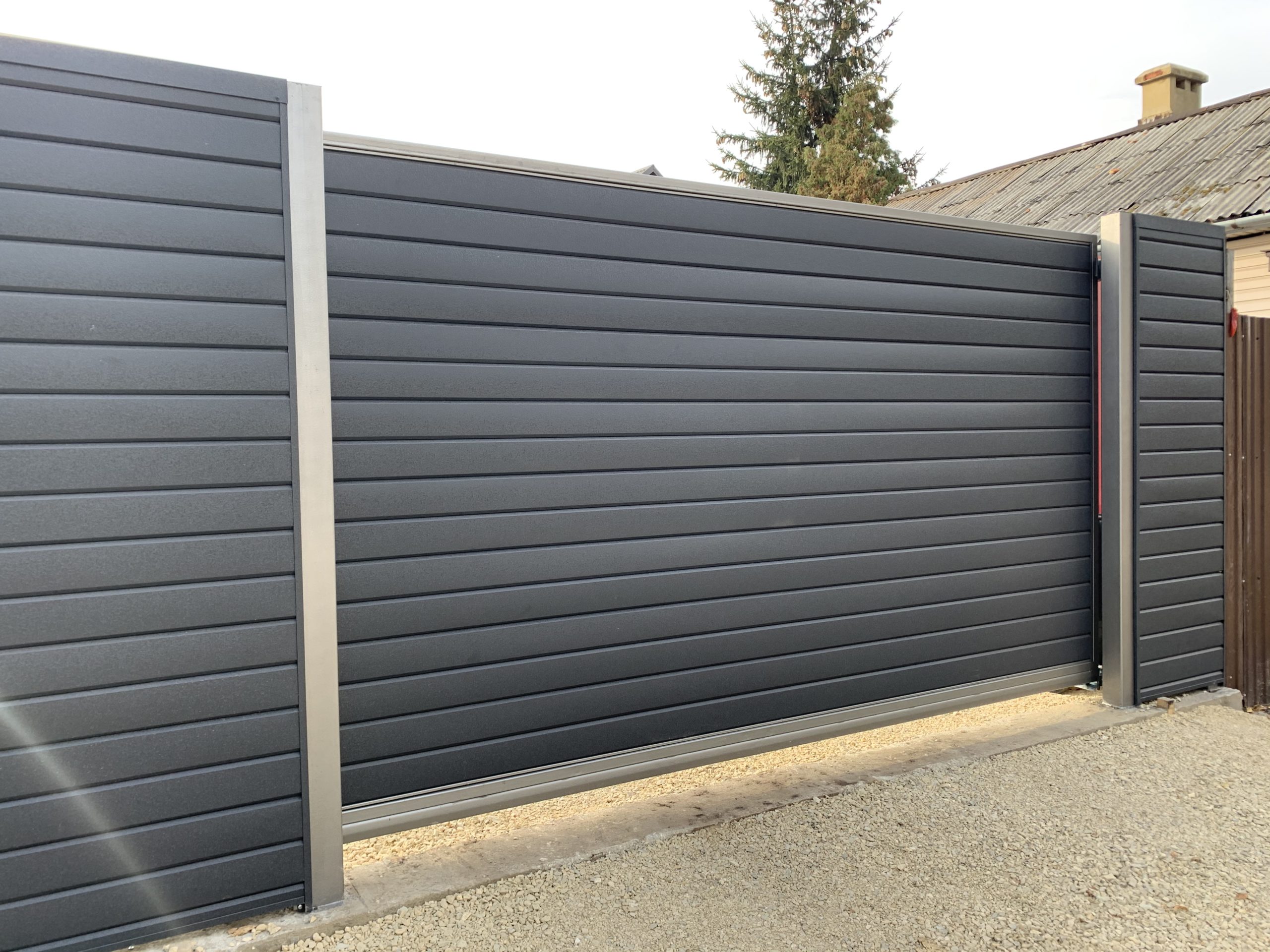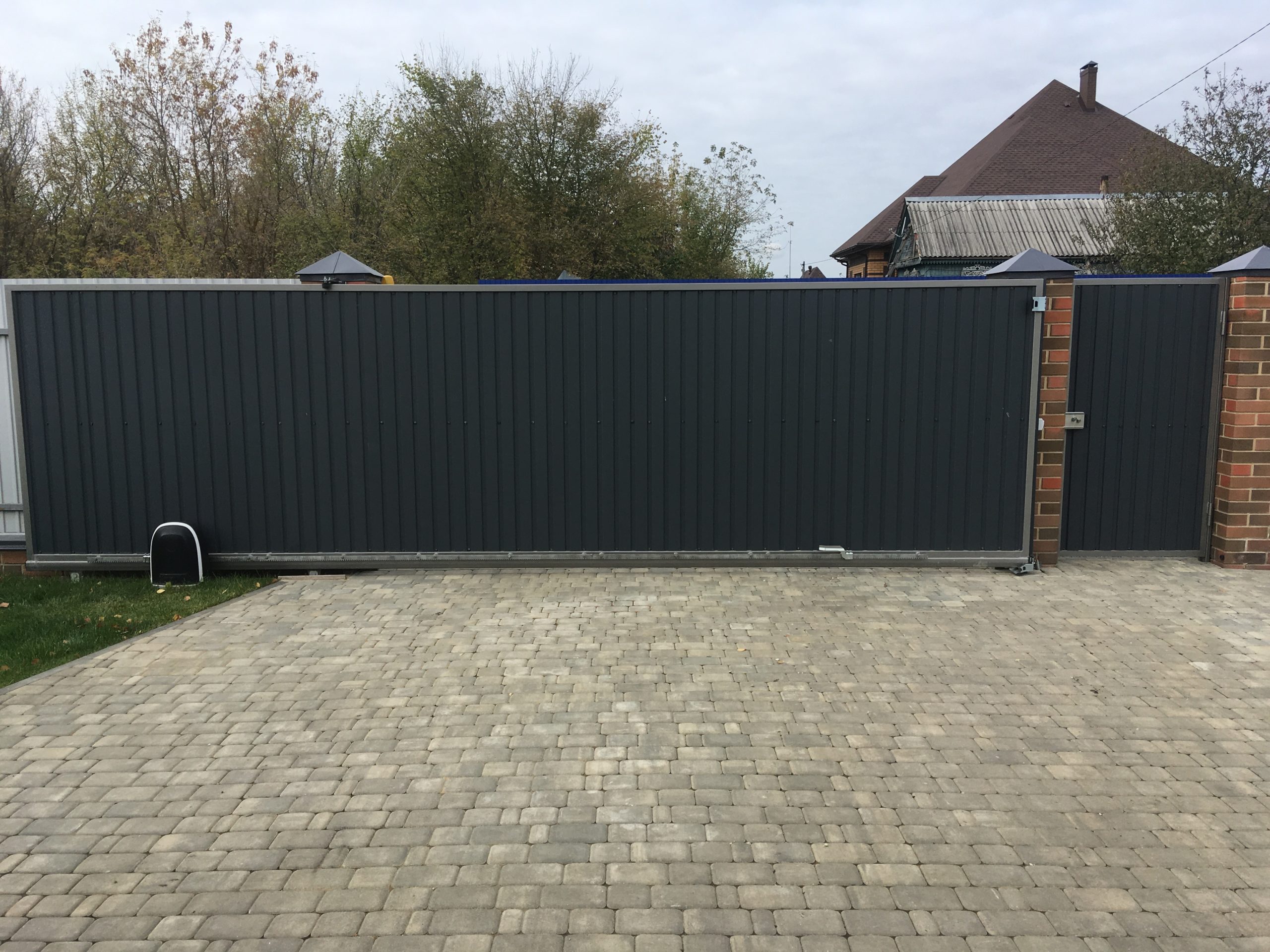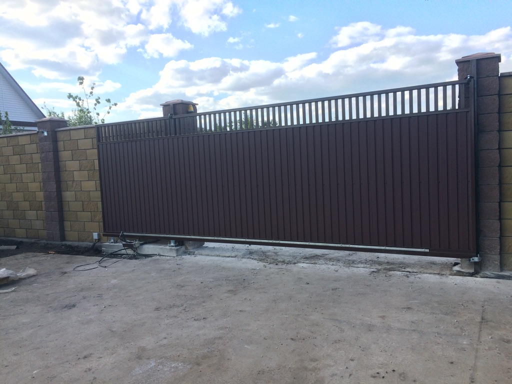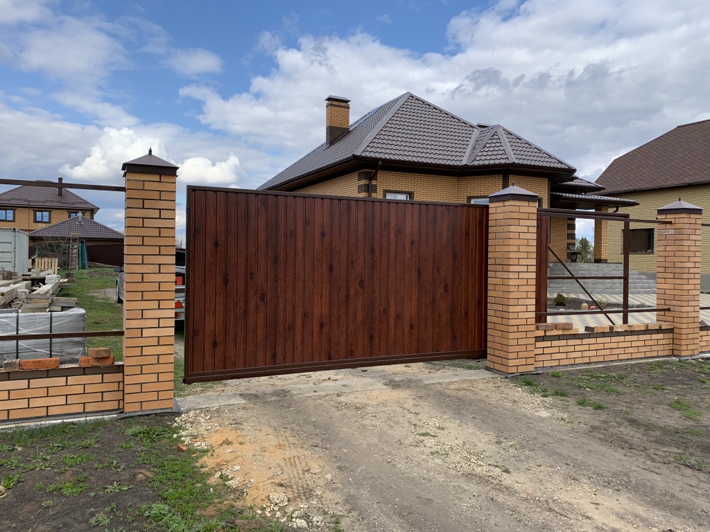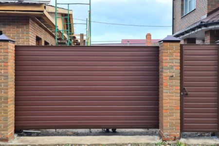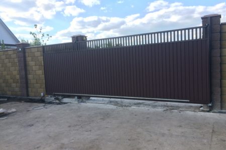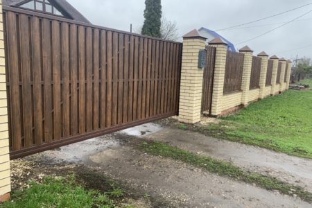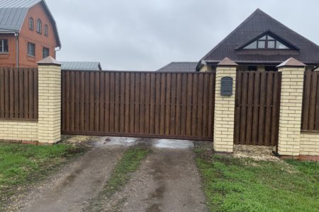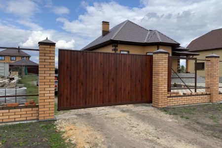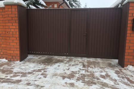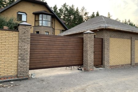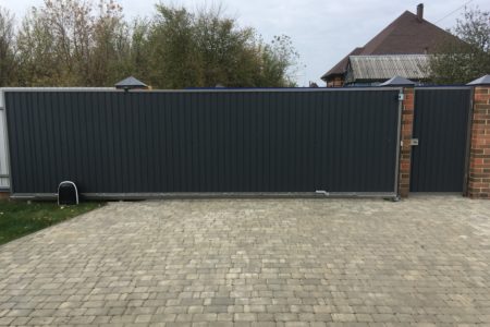 Для дополнительного комфорта откатные ворота для дачи и промышленных объектов можно дополнить отдельно стоящей калиткой, которая обеспечит удобный проход на территорию.