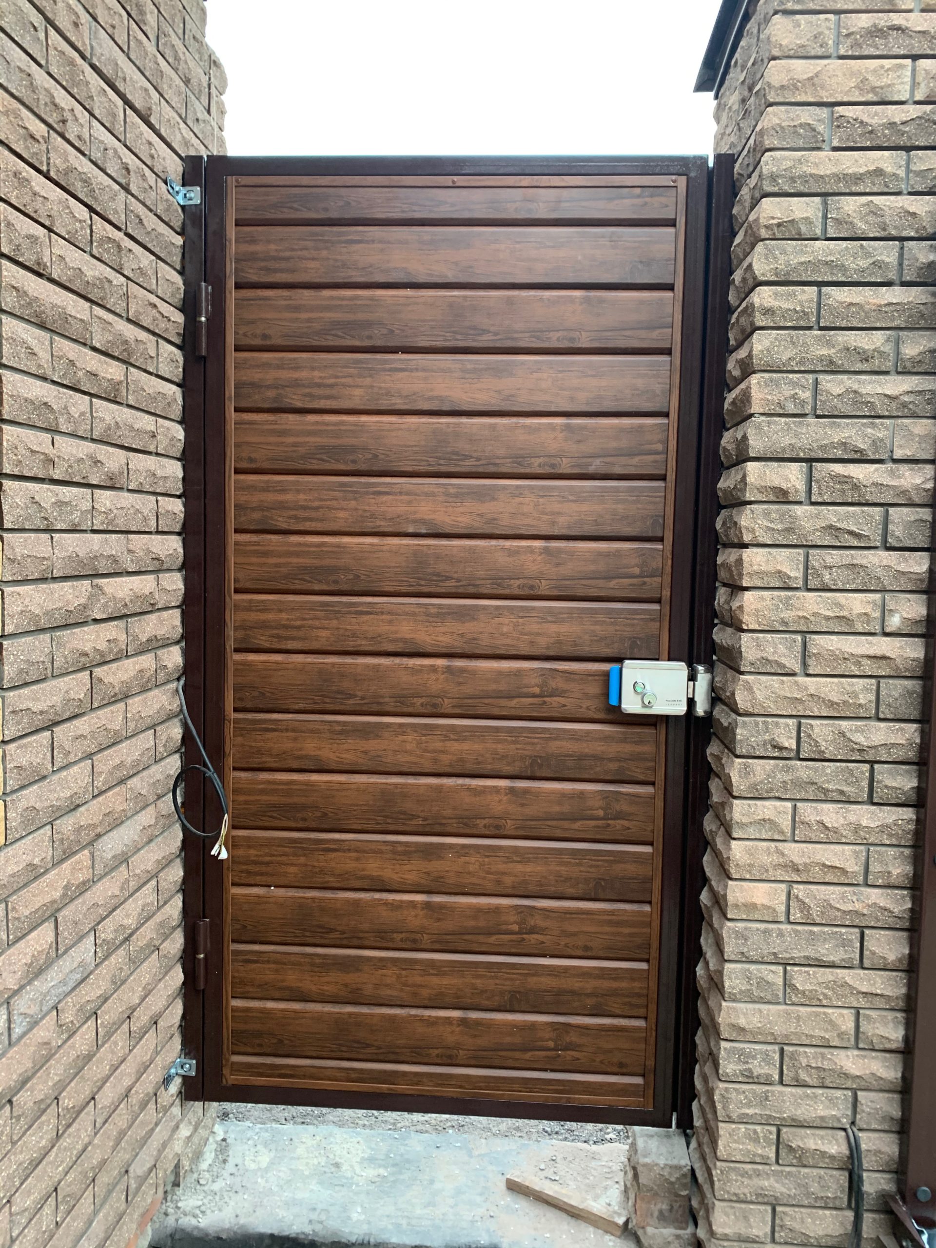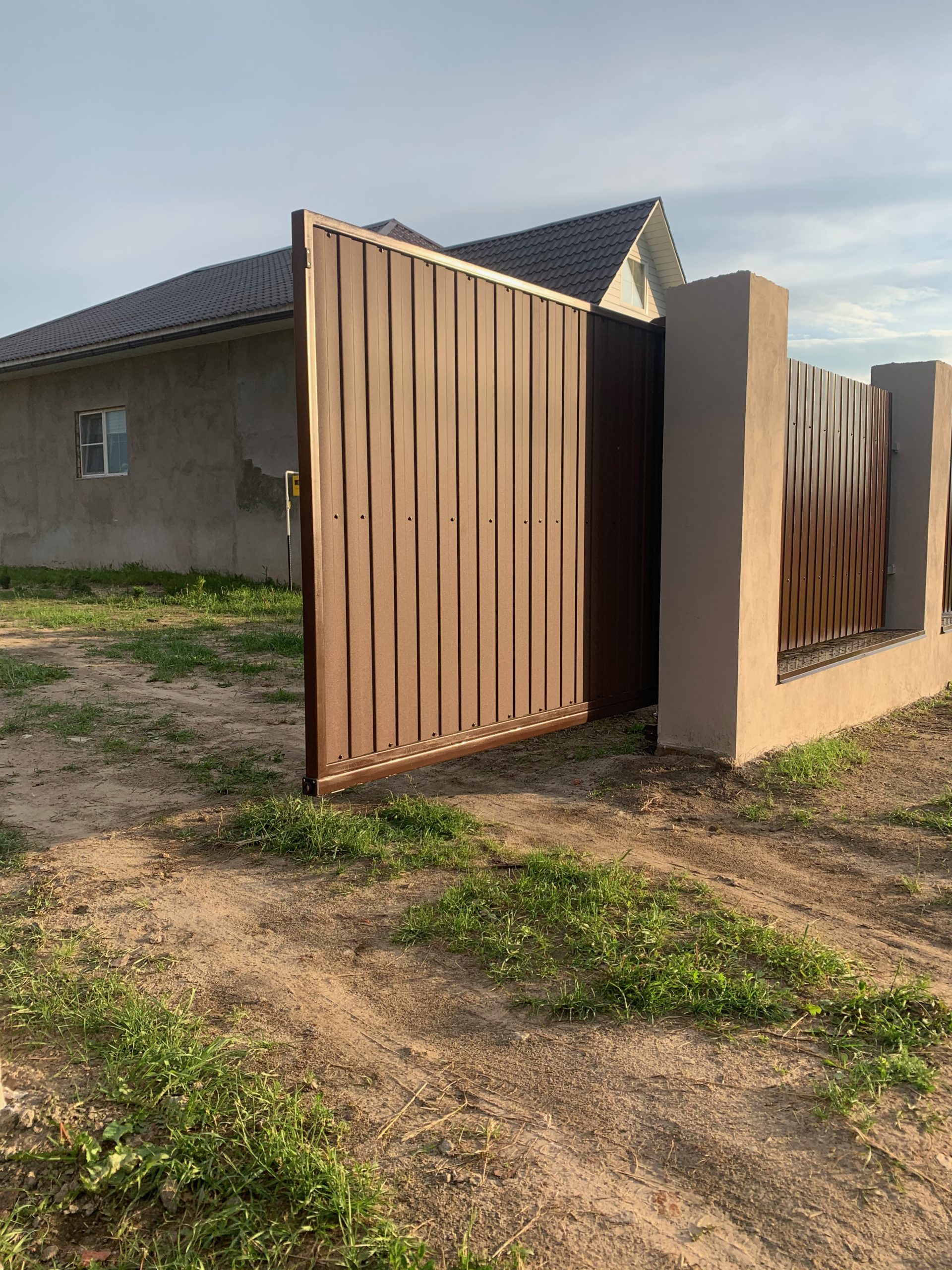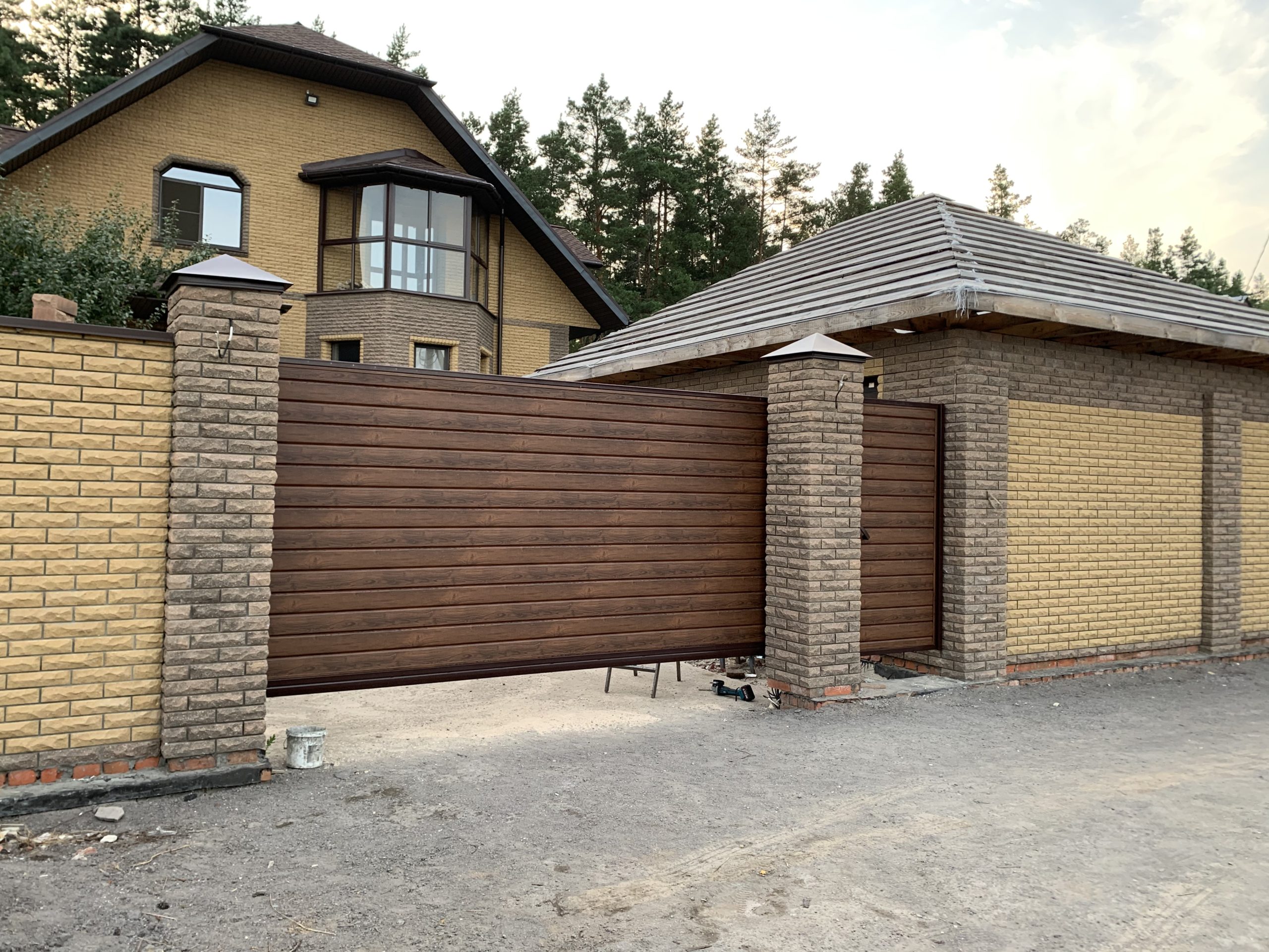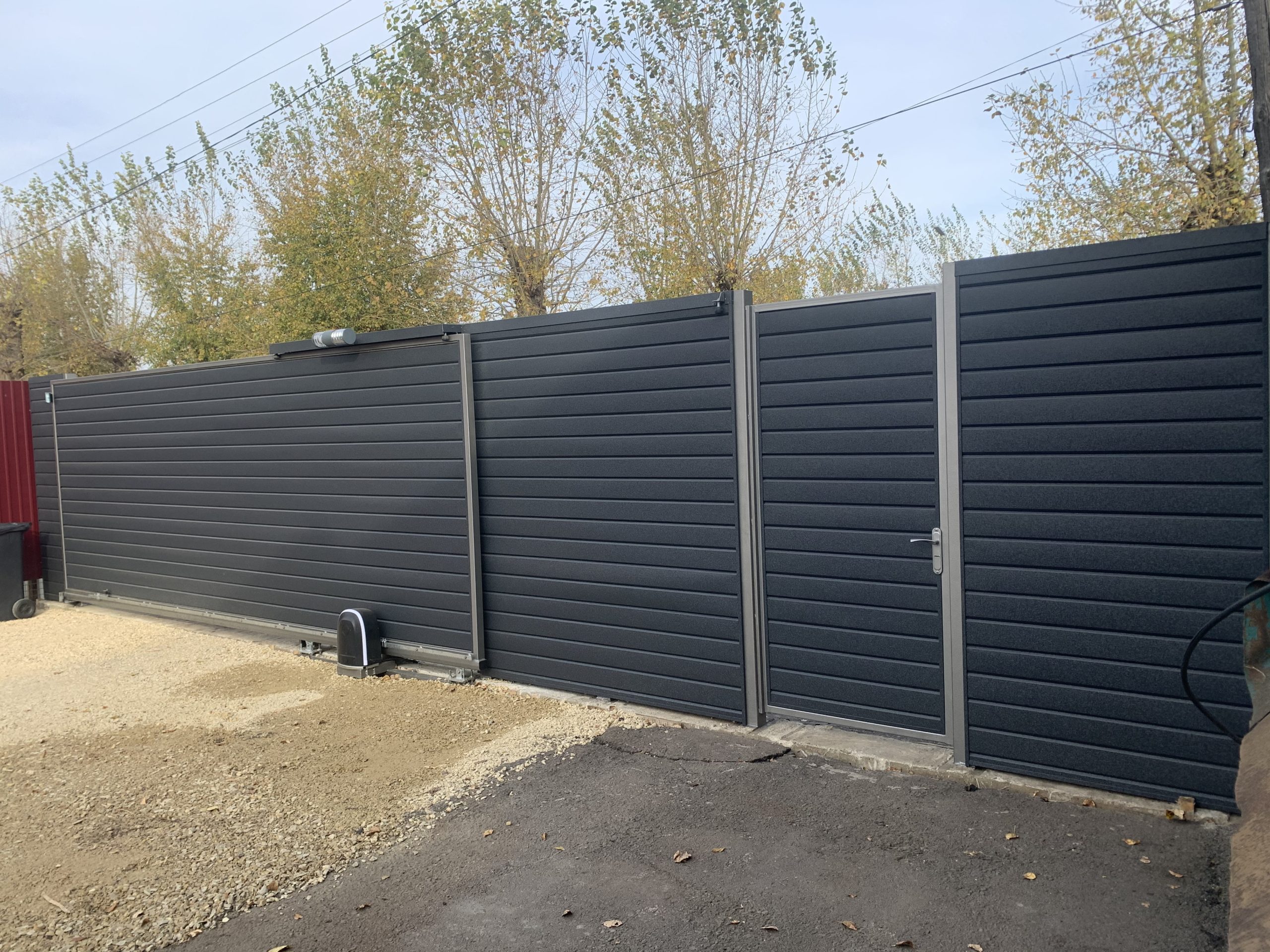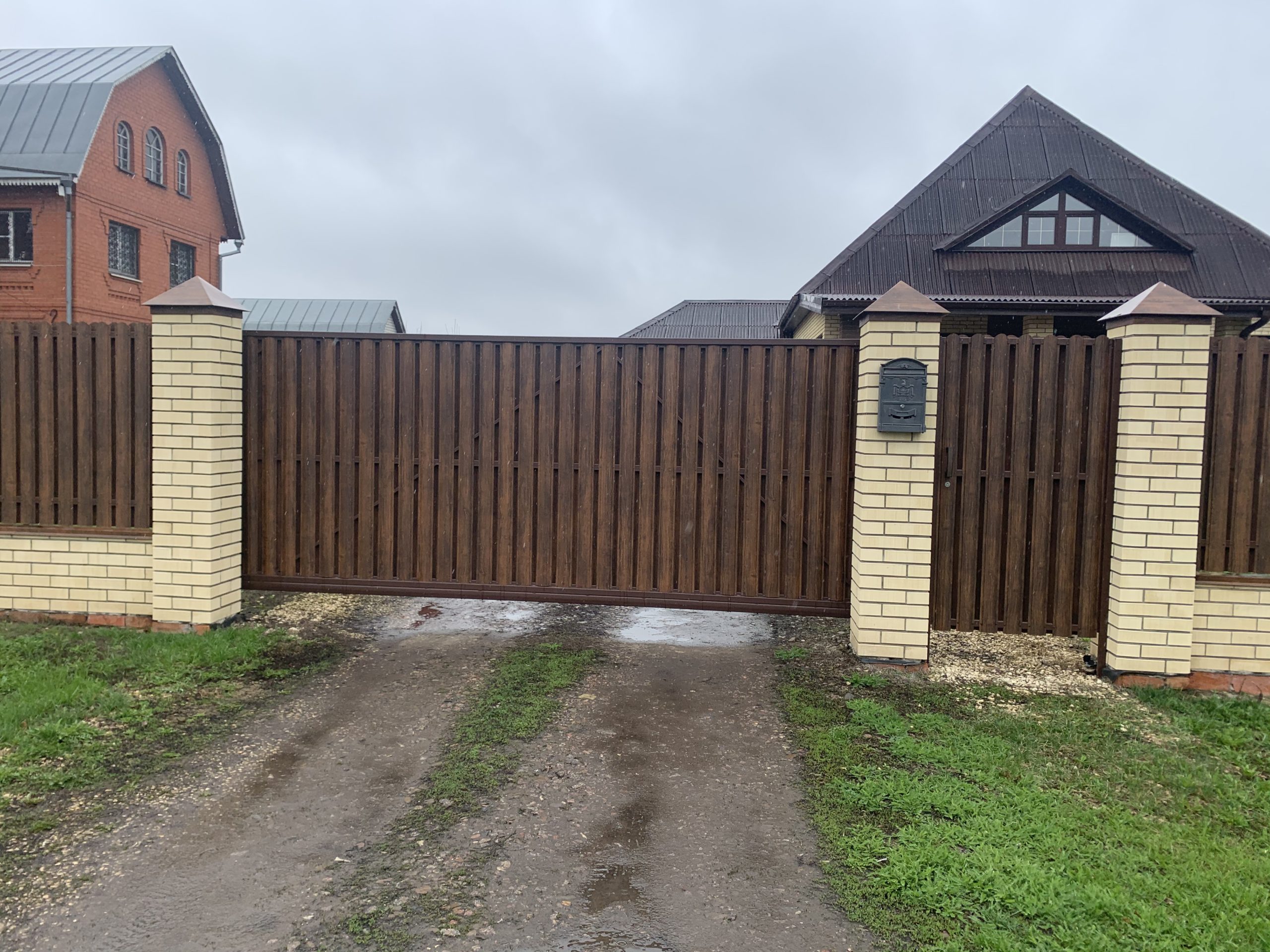Для дополнительного комфорта откатные ворота для дачи и промышленных объектов можно дополнить отдельно стоящей калиткой, которая обеспечит удобный проход на территорию.