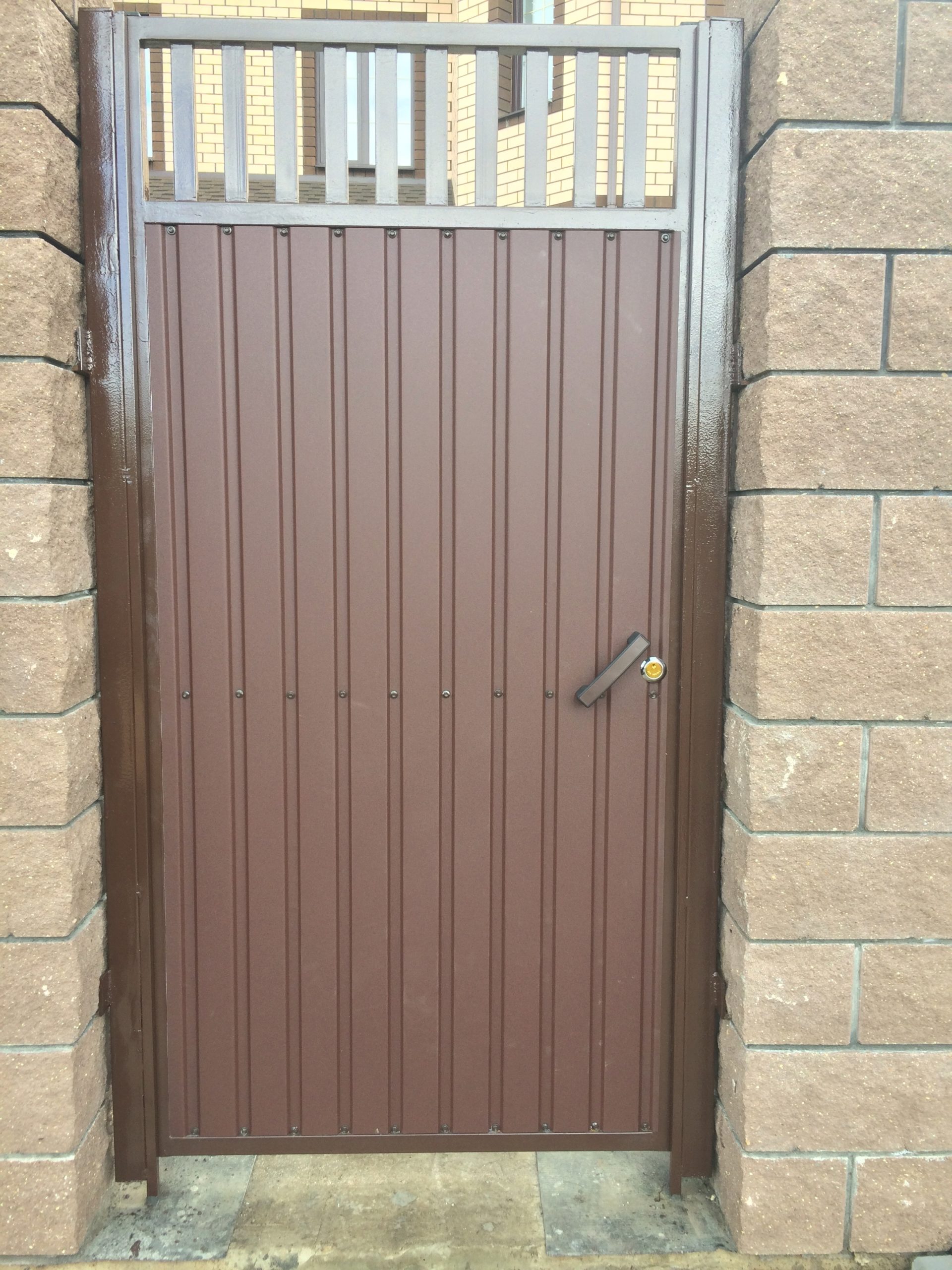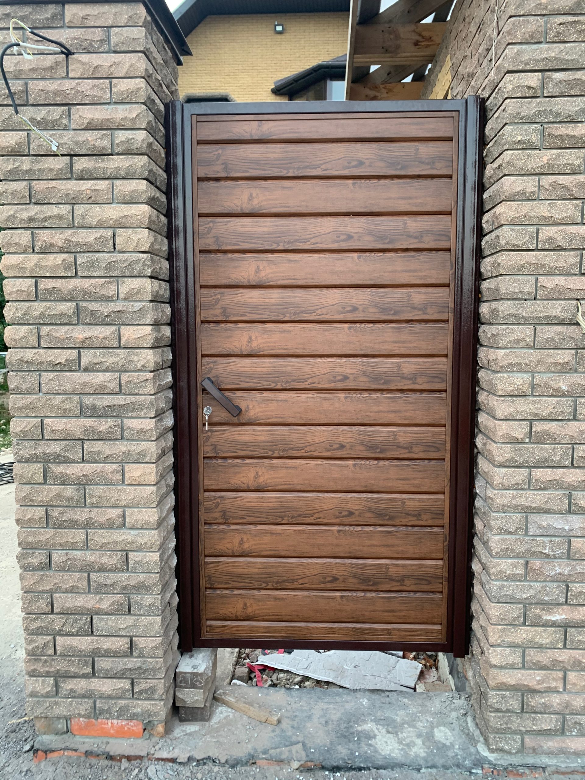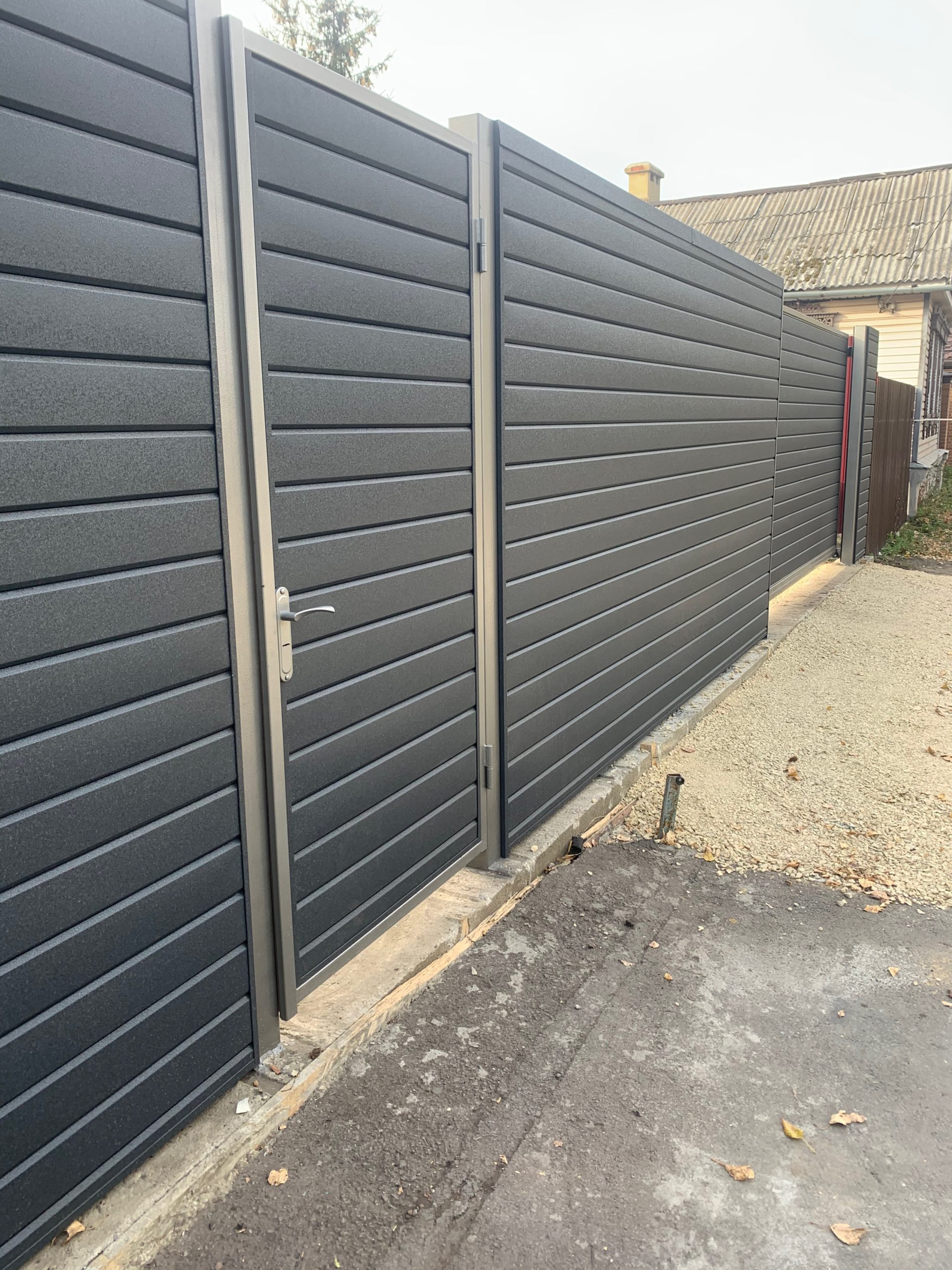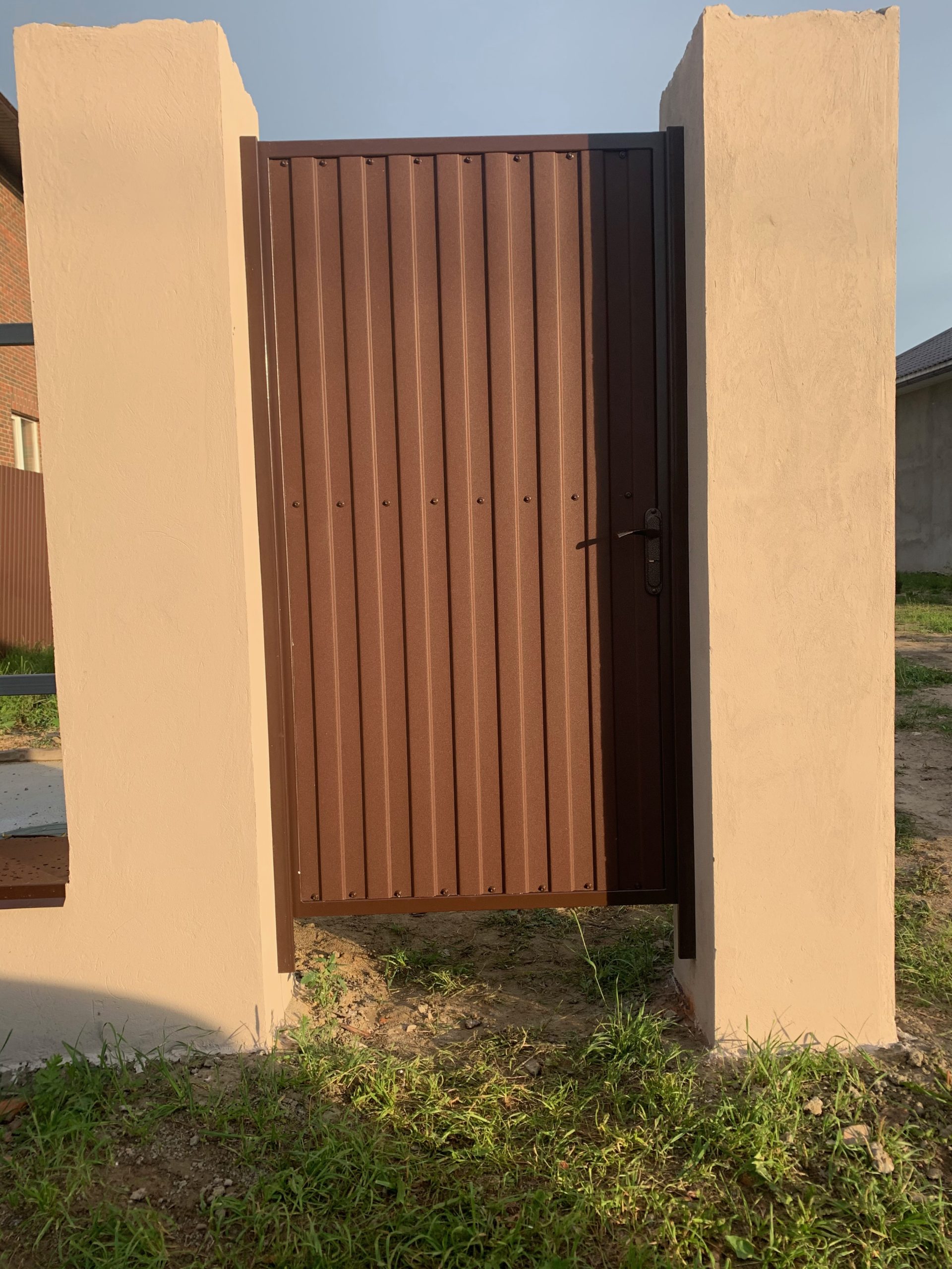 Для дополнительного комфорта откатные ворота для дачи и промышленных объектов можно дополнить отдельно стоящей калиткой, которая обеспечит удобный проход на территорию.