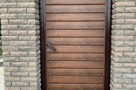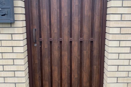 Ворота из сэндвич-панелей, имитирующих текстуру древесины (золотой дуб, темный дуб, вишня), обладают всеми преимуществами стальных ворот и придают коттеджу элементы престижа и индивидуальности.